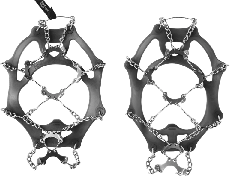 - El diseño simple y autoajustable proporciona tracción liviana sobre hielo y nieve; Las cadenas y púas duraderas de acero inoxidable resisten el óxido.