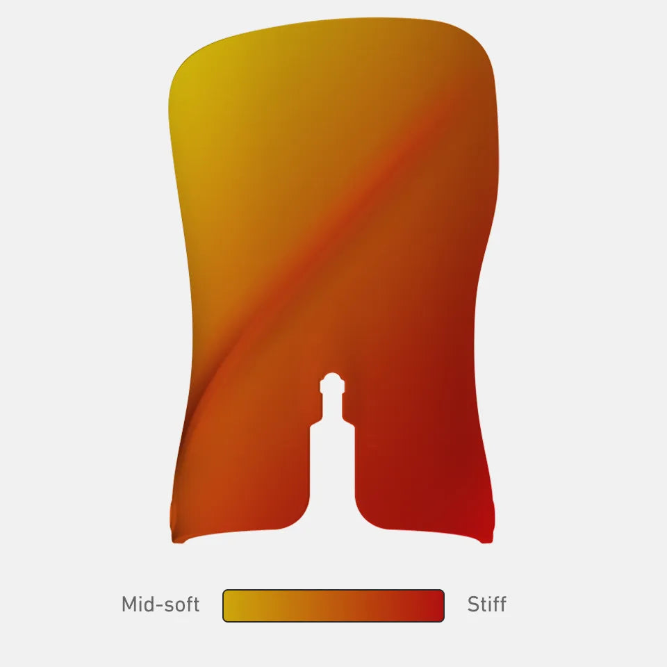 Asymmetrical Spine: Reinforced on the external side for powerful response, softer on the internal side for tweakability and all-day comfort.